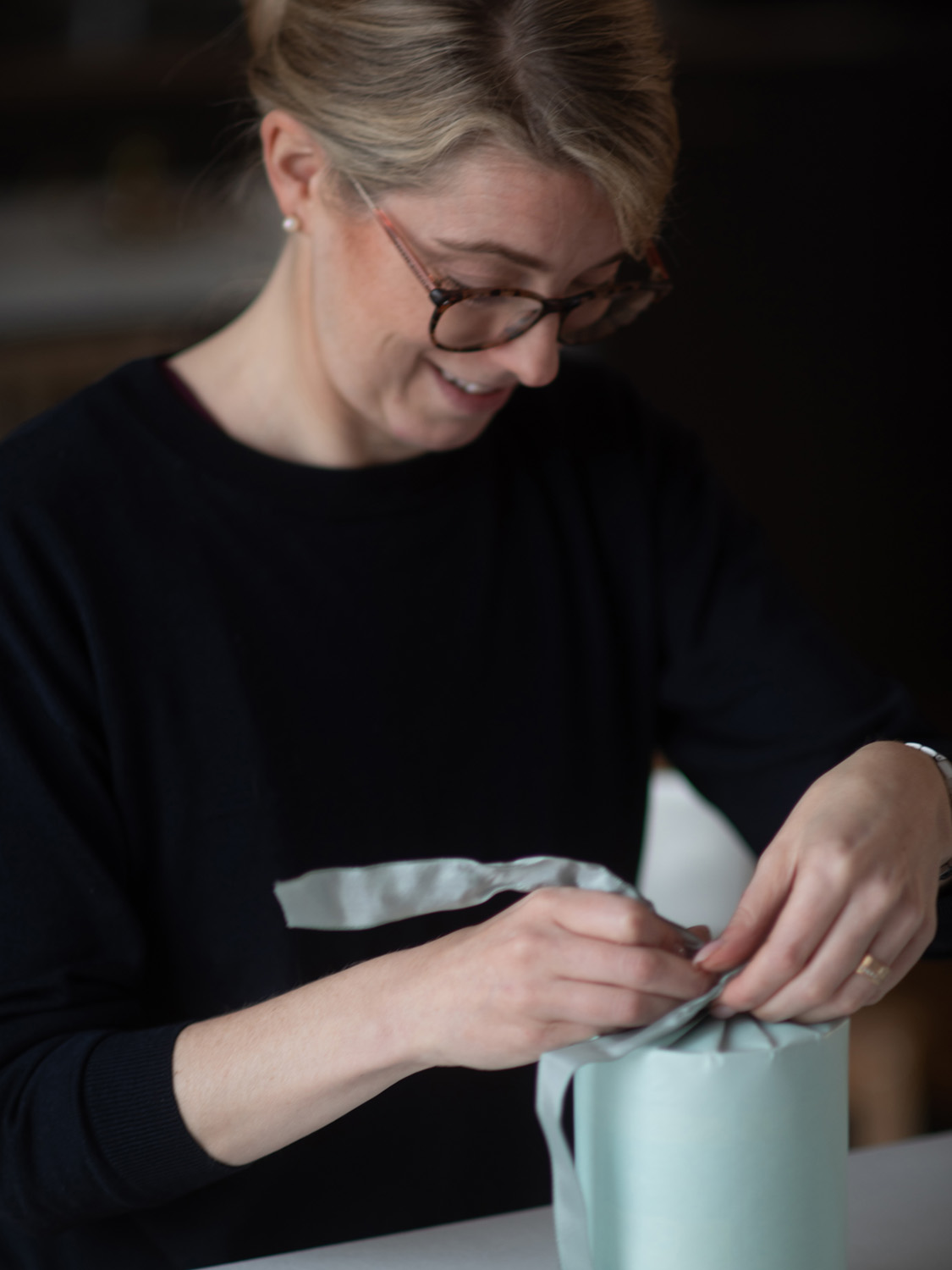 Kristin utbildar och håller workshops i vacker presentinslagning för både privatpersoner och företag. Utöver det inspirerar hon också dagligen med tips och idéer på sociala medier.